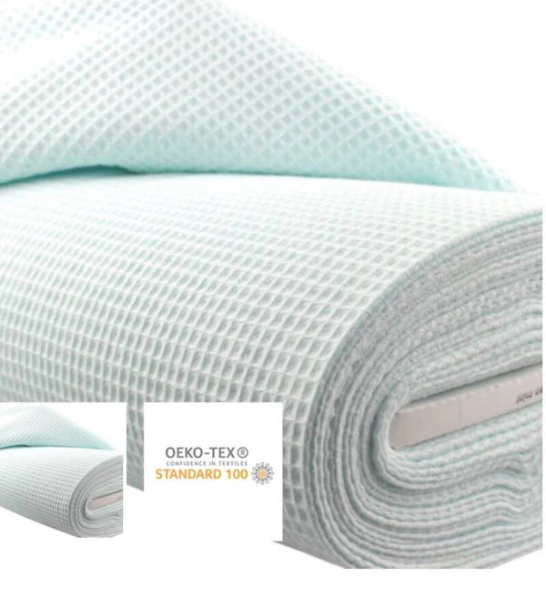 De bovenkant van het dekentje is wafelstof en in verschillende kleuren verkrijbaar :-)
