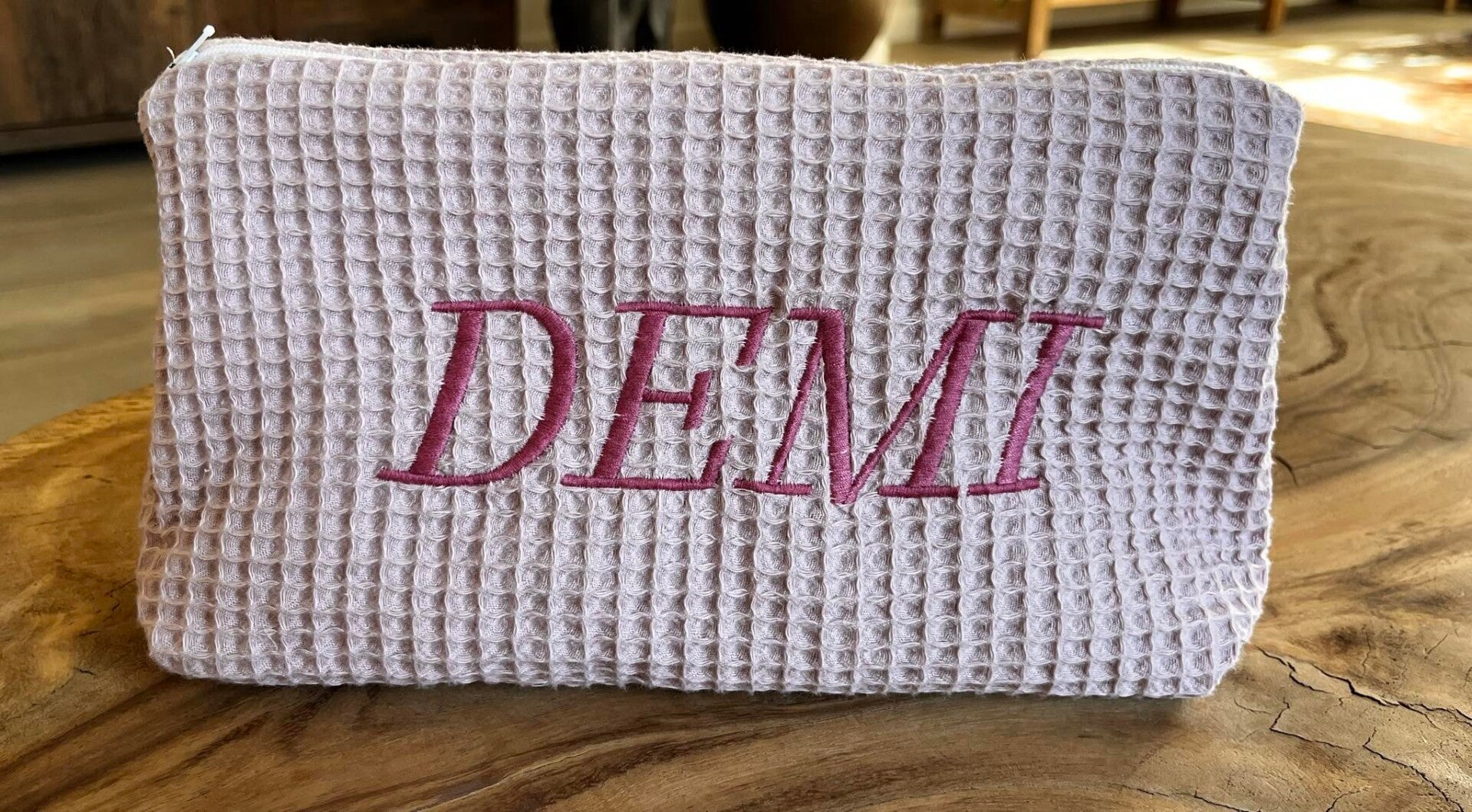 Een handig toilettasje uit wafelstof, groot genoeg om al je make-up, borstel/kam, verzorgingsproducten, parfum in op te bergen.