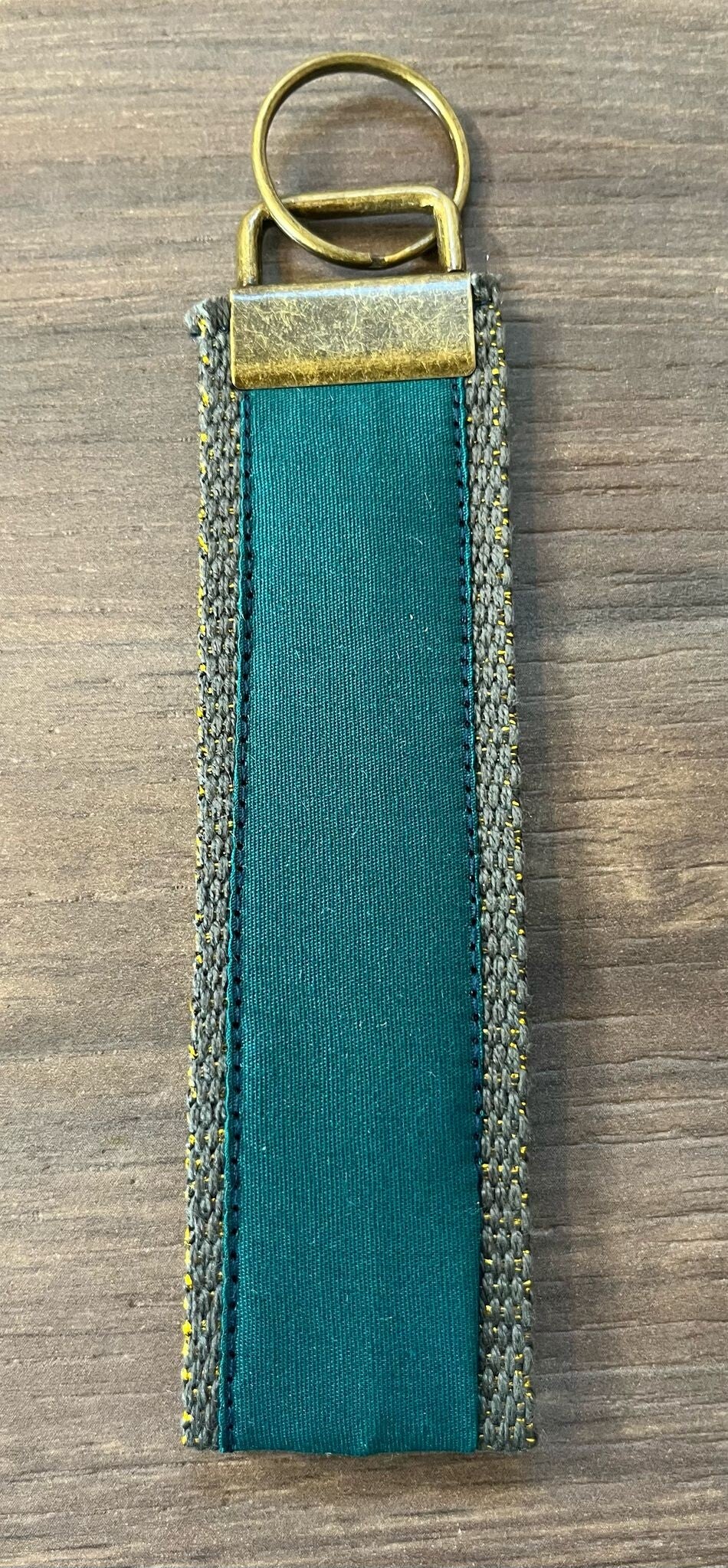 Handgemaakte sleutelhanger groen met gouden glitter