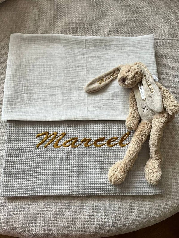Ons handgemaakte dekentje is met liefde en zorg samengesteld uit 2 fijne stoffen: zachte wafelstof en ademend hydofiel aan de andere kant.