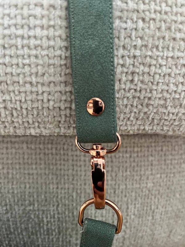 Deze stijlvolle handtas is met de hand vervaardigd uit kwalitatief mint kunstleder en straalt zowel elegantie als verfijning uit.